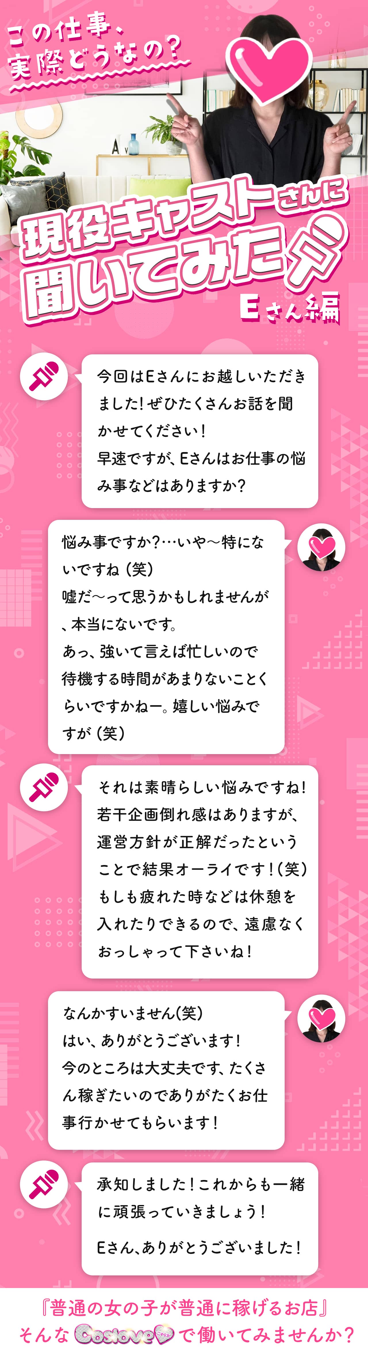 『本当の話をします。』出稼ぎリピ率ほぼ100%なのです^^お給料・待機環境・スタッフ信用度、すべて高水準だからこそ何度も行きたくなるお店なのです♪貴女を全力でサポートいたしますので、全力で稼いでお帰りください♪出稼ぎ先をお探しで困っている女の子は、当店『こすらぶ鹿児島店』へぜひ!お越しください♪♪♪