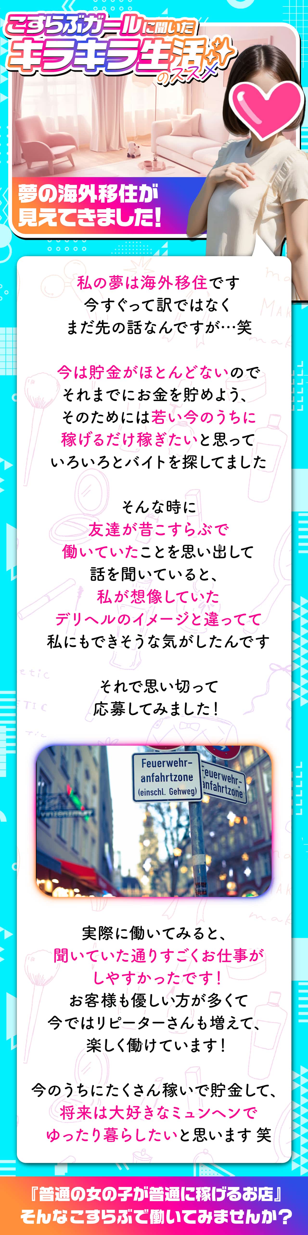 『本当の話をします。』出稼ぎリピ率ほぼ100%なのです^^お給料・待機環境・スタッフ信用度、すべて高水準だからこそ何度も行きたくなるお店なのです♪貴女を全力でサポートいたしますので、全力で稼いでお帰りください♪出稼ぎ先をお探しで困っている女の子は、当店『こすらぶ鹿児島店』へぜひ!お越しください♪♪♪