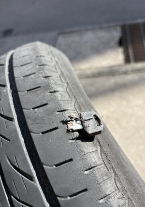 確認したら、タイヤにカギが刺さってました(-_-;)