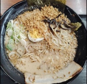 マー油入り中太ストレート麺チャーシュー、海苔、ゆで卵、ネギ、キクラゲ、と具材多い