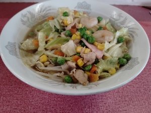 海老、烏賊、蒲鉾、もやしなど具沢山