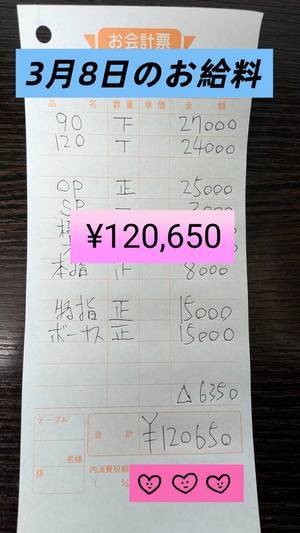 3月8日のお給料公開