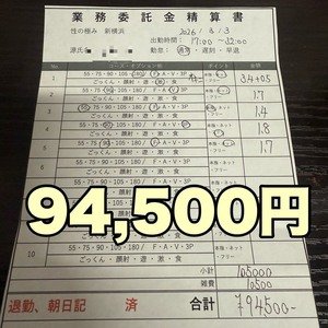 14-21時の出勤でこちらのお給料でした‼