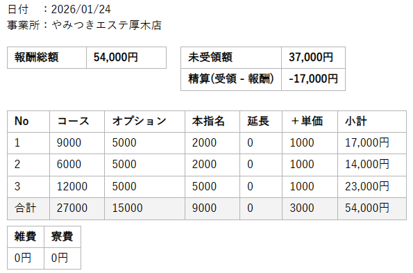 総支給額:¥54,000-