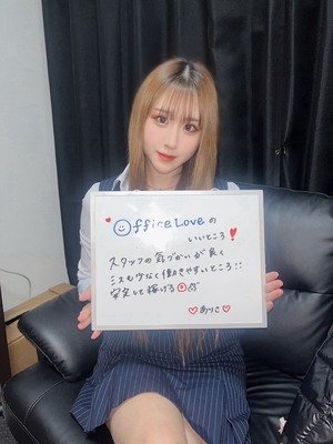 | A | オフィスラブは【女の子ファースト】をモットーとした店舗です✨ 可能な限りストレスを軽減し、働きやすい店舗だと思っています( ´ ▽ ` )💕 今後も更にキャンペーンによる還元・頑張りが評価されるシステムなど 稼ぎにも居心地の良さにも繋がるよう尽力していきます!٩( 'ω' )و あなたと一緒に働ける日をスタッフ一同お待ちしておりますm(_ _)m✨ |