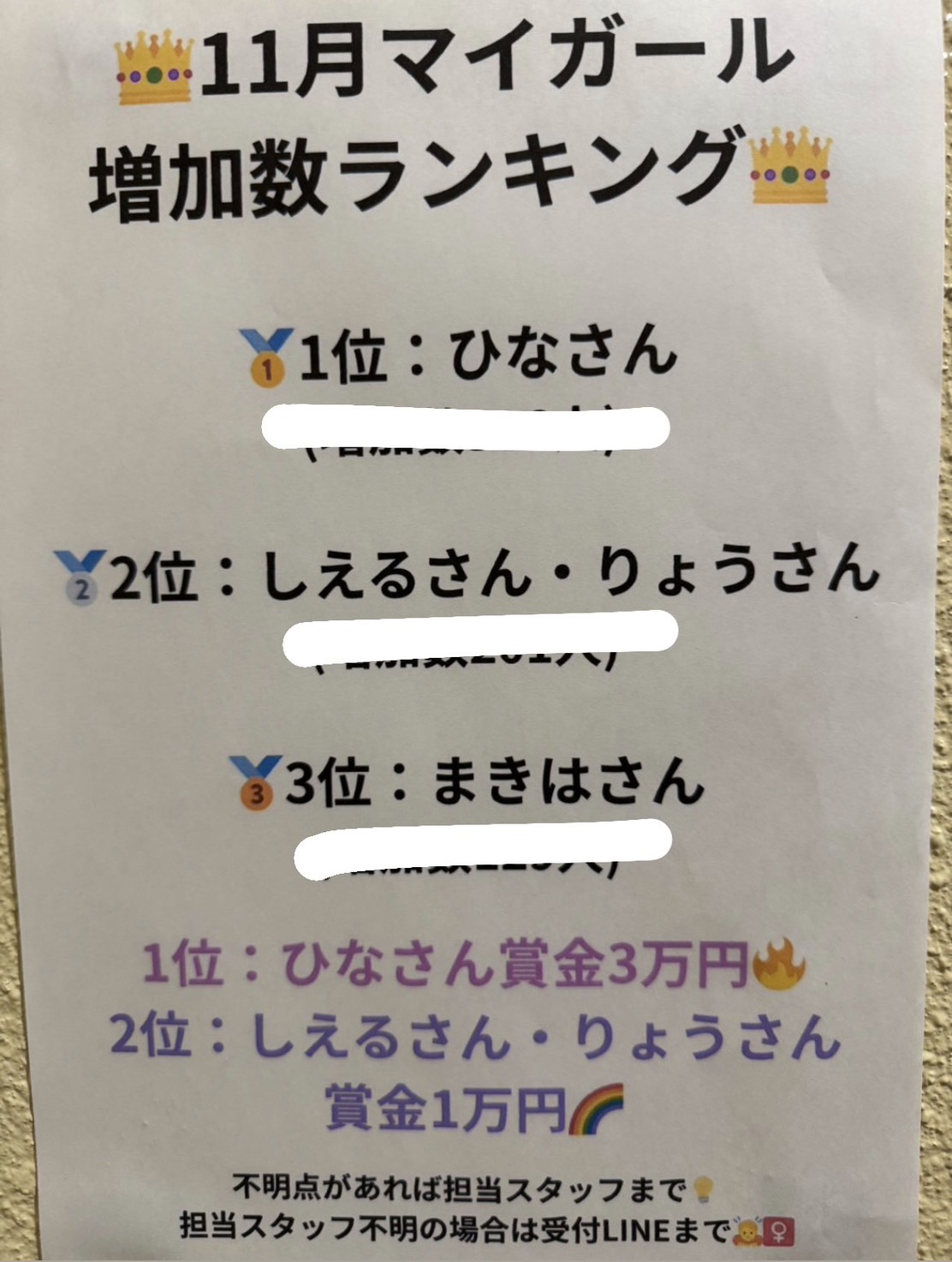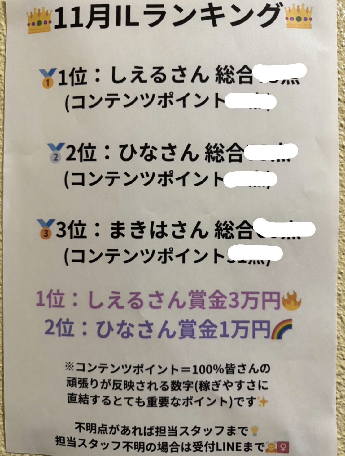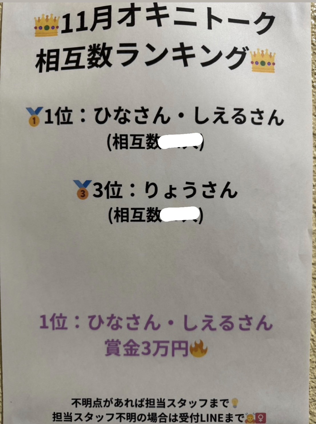 在籍のキャストさんが前月のスコアに応じてランキング形式で賞金をお渡ししております🫡