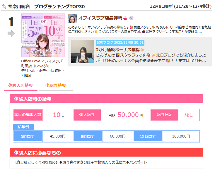 この前Office Loveのガールズヘブンとジョブヘブンのブログランキングが