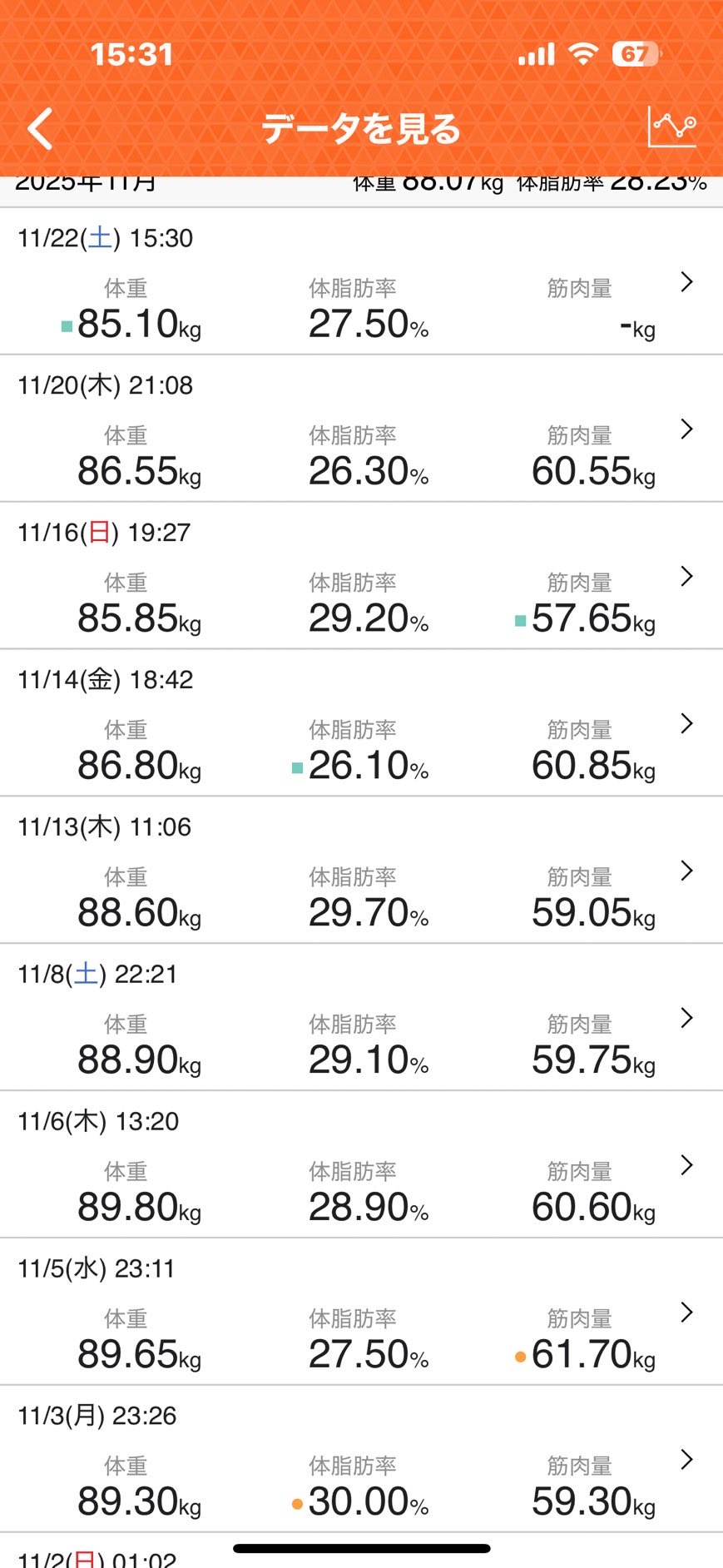 85.1キロ で約7キロ減・・・