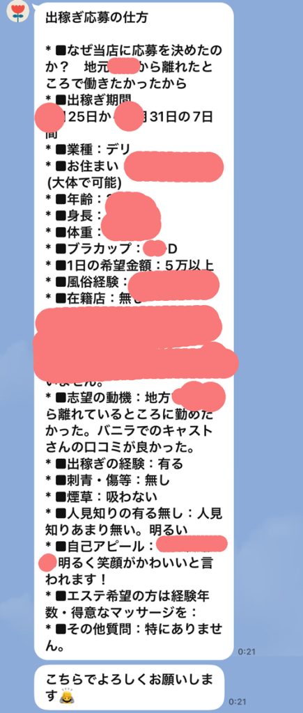 バ ニラから応募があり、バ ニラ内では写真面接が出来ないのでLINEを追加してもらっての面接になります!!
