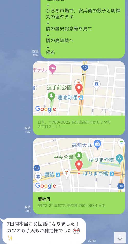 高知観光やご飯も楽しみながら、うまくメリハリをつけて過ごしていました。