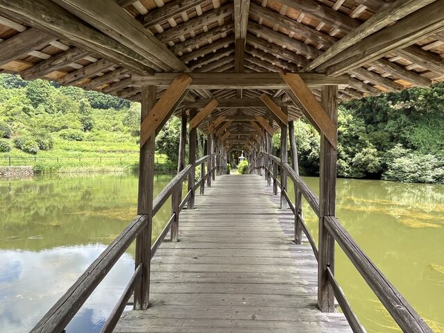 この橋、なんと全体が木造の手作り風で、まるで時が止まったような静けさ。