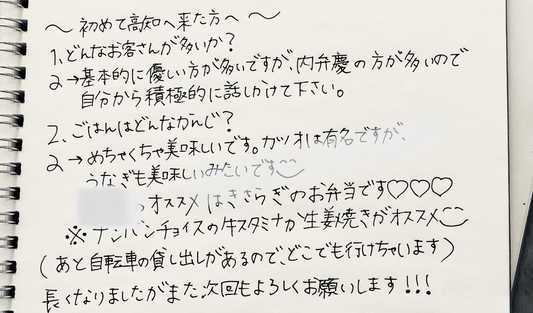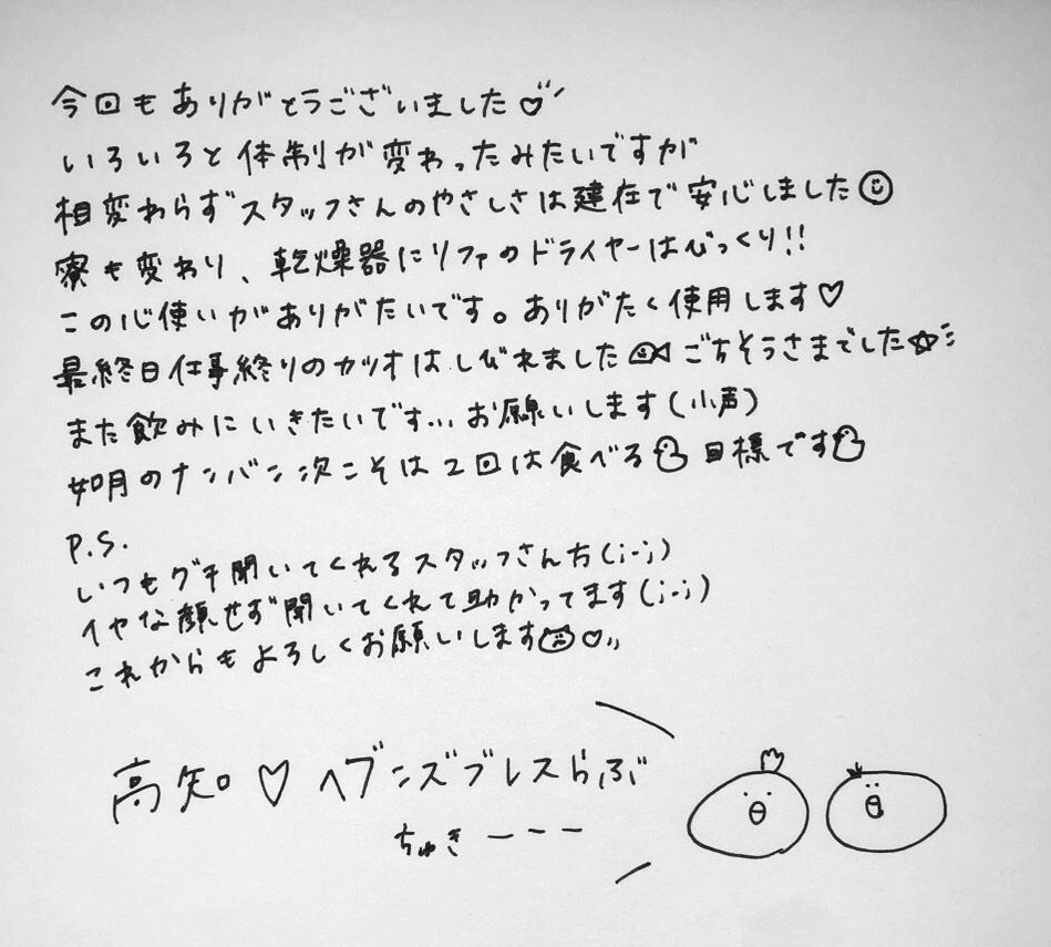 出稼ぎ中でもいいですし、最終日とか帰る時に書いてくれる女の子もいます🎶