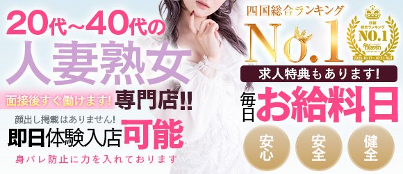 四国の中でも好条件・好待遇の環境で働いて頂いており屈指の人気風俗店と自負しております。