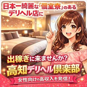 日本一綺麗な個室寮が完備され、完全自由出勤制でライフスタイルに合わせた働き方ができる「高知デリヘル倶楽部」。初心者にも安心なサポートが整っており、安心して働ける環境が整っています。高待遇でしっかり稼げるこの機会に、あなたもぜひ一緒に働いてみませんか?