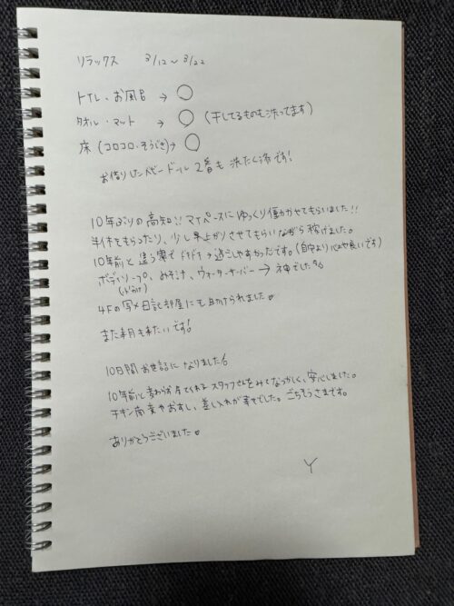 10年前と変わらず居てくれるスタッフさんをみてなつかしく、安心しました。