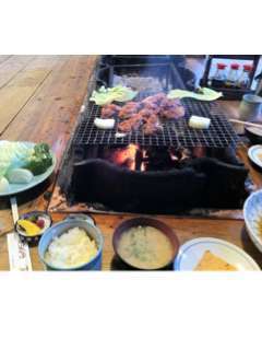 温泉やソフトクリームを堪能して、名物の地鶏を食べましたよ(笑)