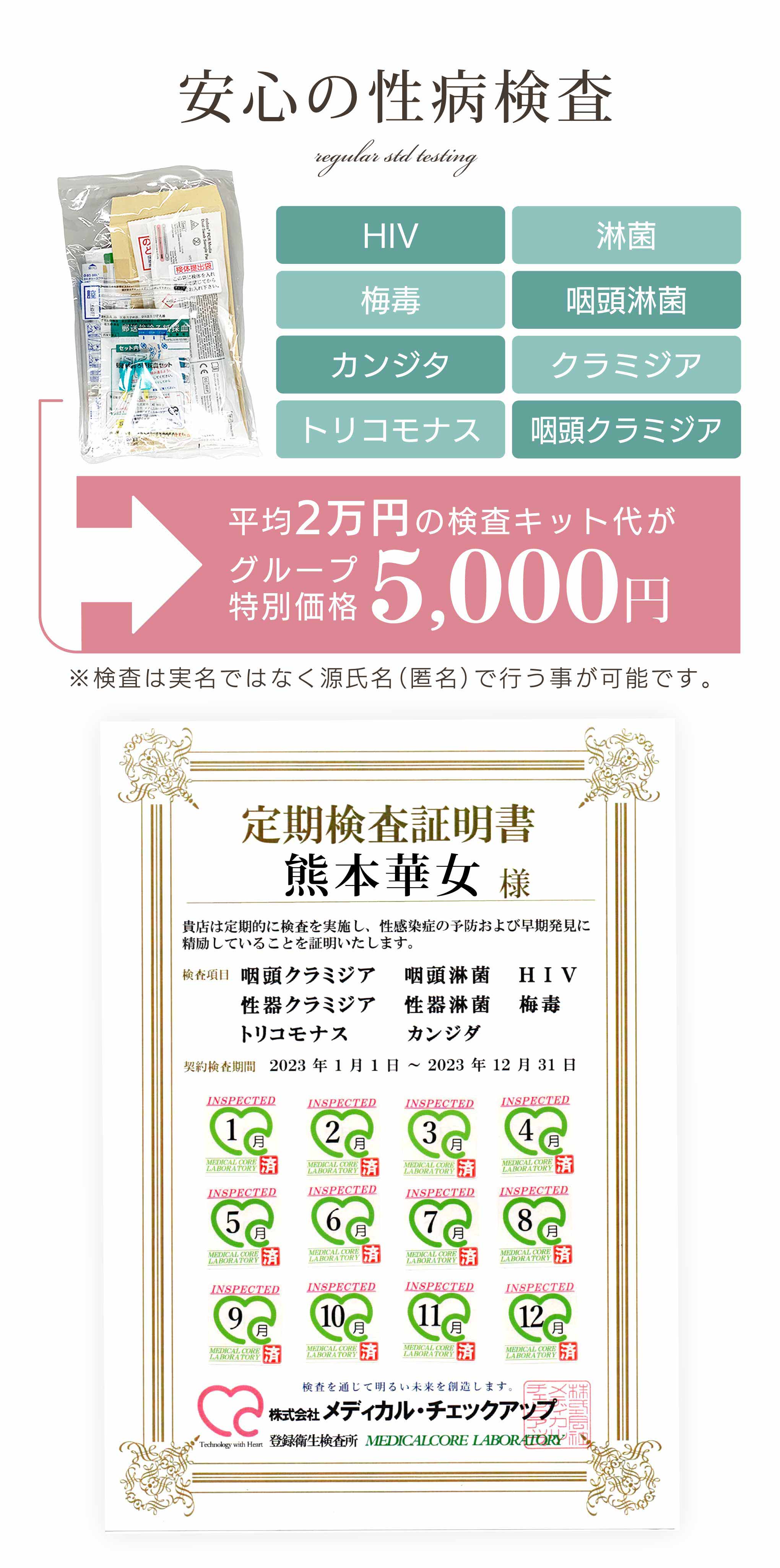 全在籍女性に店舗主動で定期的に検査を行ってるお店様は少数派の様ですが、病気に対する不安は経験の有無に関係ありません。