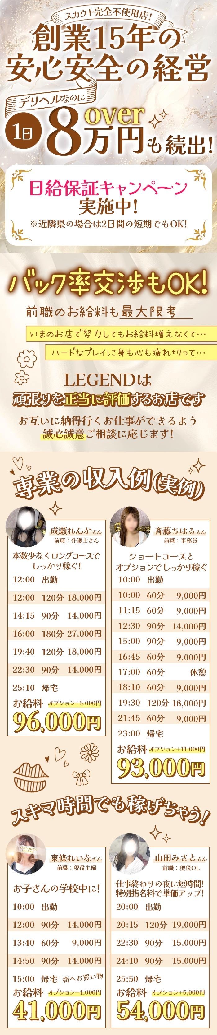 当店は年中無休で営業しております。 生理休暇はもちろんのこと週1日や月1日の少ない出勤でもかまいません。貴女のライフスタイルに合わせて頂いて結構です。少ない日数でも確実に稼がせます!! |