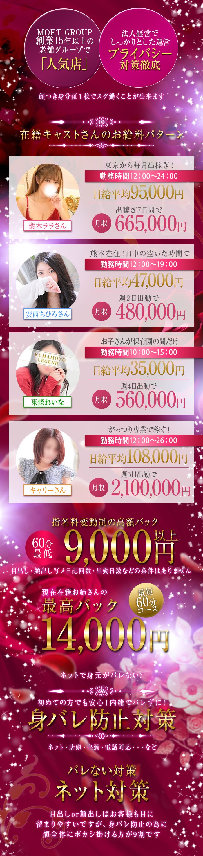 【60分9,000円~11,000円】人妻ジャンル熊本1位のお店!評判が良すぎて紹介で入店する女の子多数!お給料例も公開中なので詳しくはお店ページをチェックしてみてください!