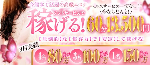 年間広告費はグループ全体で10億円、熊本では新規で始まるお店ですが、圧倒的ブランディングで入店後間もなくから高収入をお約束いたします!また、今の現状よりもっと稼ぎたいという方、業界未経験で不安だという方、どんな悩み・懸念も、経験や実績をしっかりと積んだ業界を知り尽くしたスタッフが、全力で貴女をサポートさせていただききますのでご安心ください!