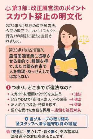 経営者だけでなく、スカウト役の男性・従業員も報道対象となり、