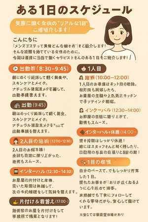 今回は実際に当店で働くセラピストさんのとある1日をご紹介します!
