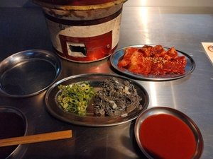 外で焼肉を食べているというのが