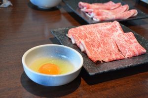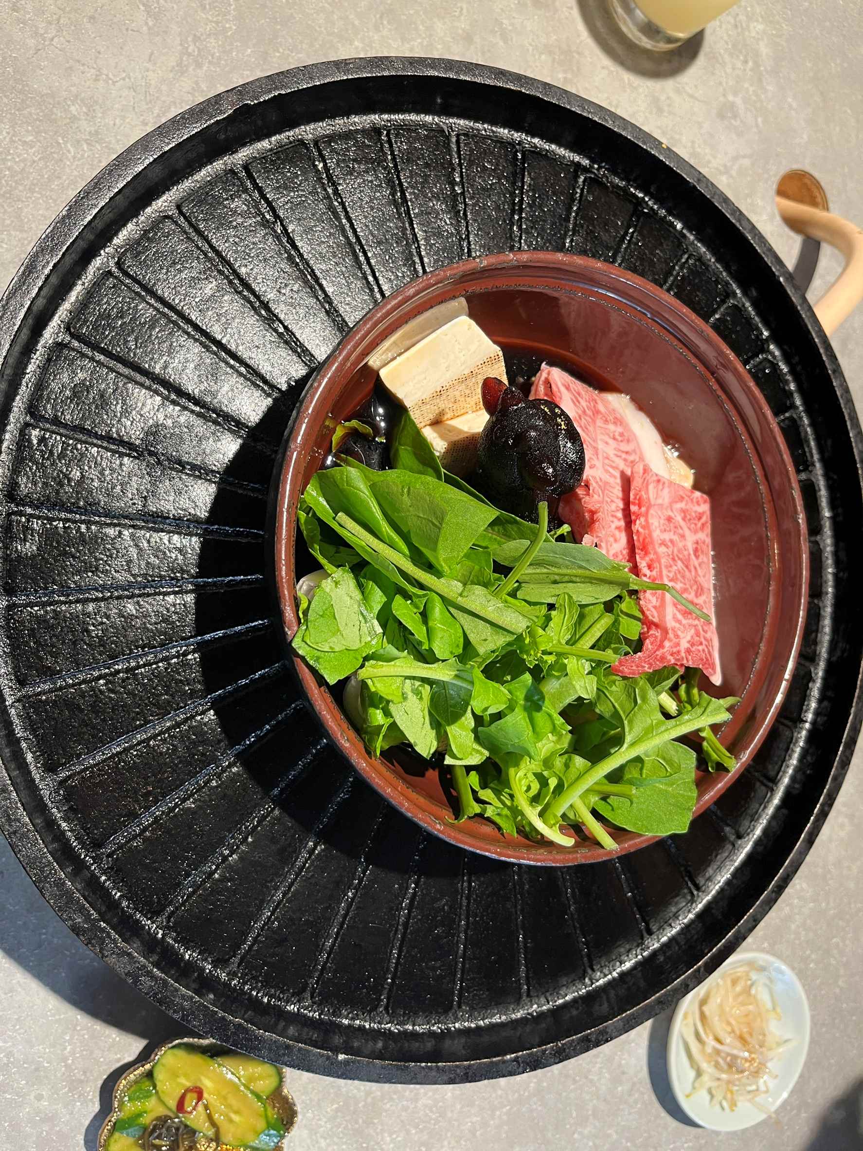 お肉はすき焼きを食べました!真ん中の部分で煮込んだお肉があり、
