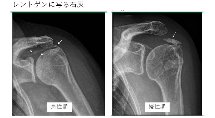 肩の筋肉の筋に石灰というカルシウムのかたまりみたいなのが付着して