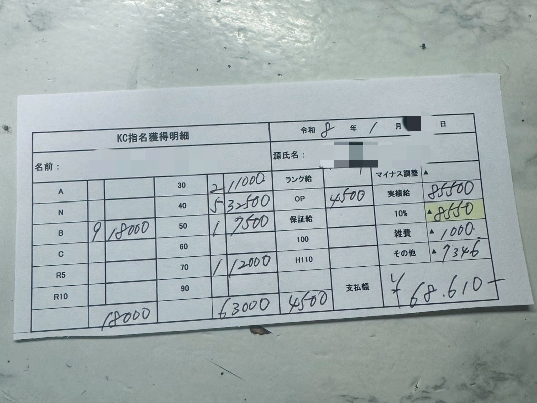 場内指名で稼ぐ💪🏻お給料明細【68,610円】