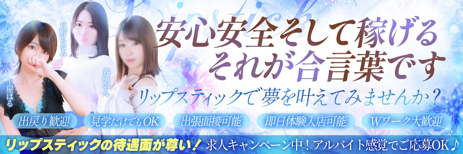 1日10万円以上可能!1日体験入店制度有り!リップスティックが大切にしていることは、ズバリ!『安心のカタチ』