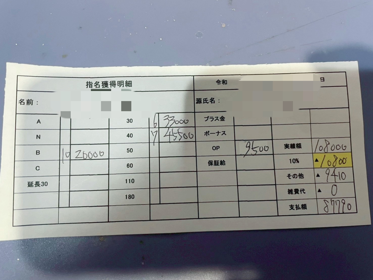 実際の女の子のお給料明細を