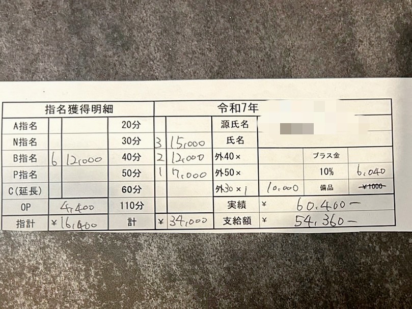 50分のお給料バックは14,000円