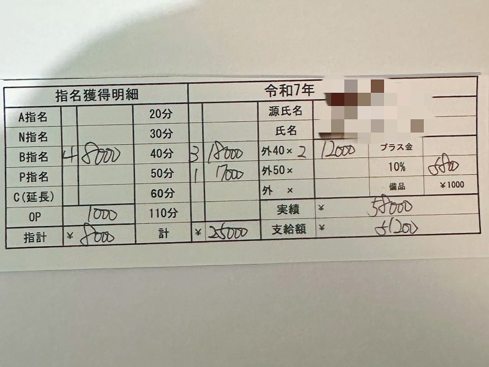 そこで実際の女の子のお給料明細を