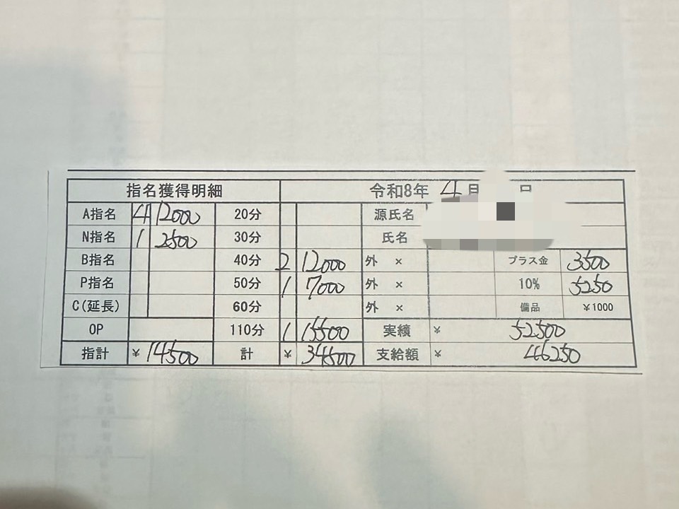 そこで実際の女の子のお給料明細を