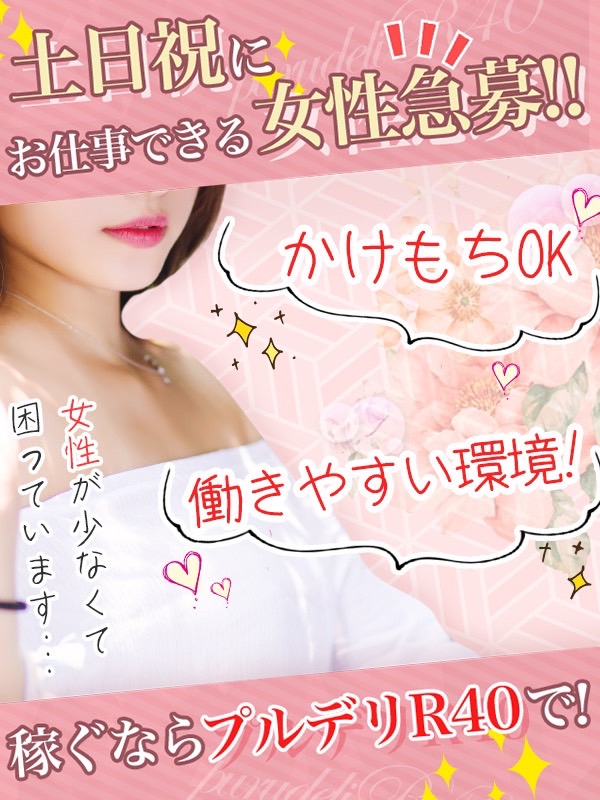 はじめまして😊こんにちは😊過去5年ほど、「大手人妻熟女デリヘルグループ」で店長をして全国一位の売り上げを達成いたしました😊ただ、その中で、やはり30代40代50代の女性の待遇の悪さ、給料の安さを感じていました😊そこで、プルプルグループにおいて、「30代40代50代」でも稼げるお店をスタートしたいとの事で「プルデリR40」を立ち上げました💕「出張面接」や「お迎え」の準備してますので、お気軽にお知らせください♪ご相談だけでも全然OKなので求人直通LINEにLINEください😊💕LINE ID ***※秘密厳守で対応させていただきます※