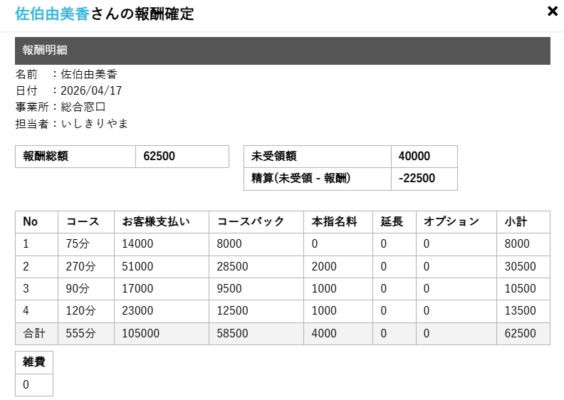 💰佐伯由美香さん 49歳 お給料明細💰 入店3年でも6万円OVER💰