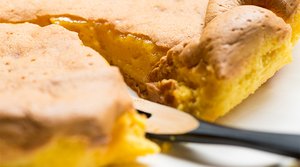 とろりと半熟のカステラは、卵のコクをしっかりと感じられる濃厚な味わい。