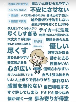 「自己犠牲する」「すぐ許してしまう」「いい人止まりで終わりがち」「懐が深く一途」