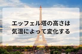 エッフェル塔の高さは、夏の暑さで鉄が膨張するため約18cmほど高くなり、冬の寒さで収縮するため低くなります。