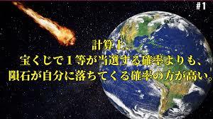 多くの試算や比較において、隕石が自分に落ちてくる確率の方が、宝くじの1等に当たる確率よりも高いとされています☆