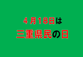 1876(明治9)年4月18日、当時の安濃津(あのうつ)県と度会(わたらい)県が併合し、現在の三重県の範囲が定まったことにちなんで三重県が記念日に制定しております。