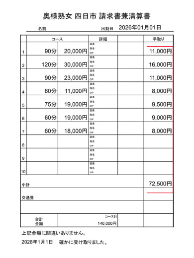 本日ご紹介するのは20代奥様コースの体験入店された女の子お給料です♪