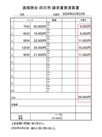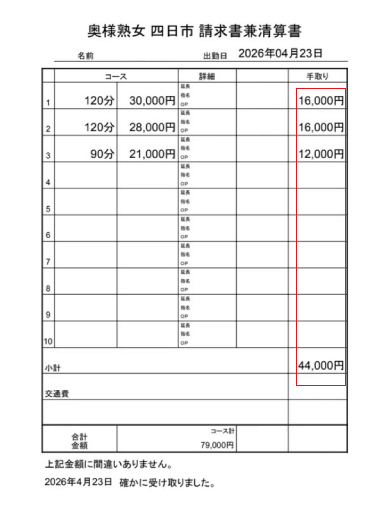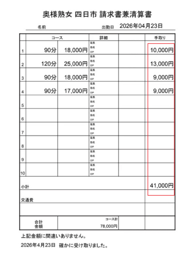 本日ご紹介するのは出稼ぎせの20代奥様コースのお給料です♪