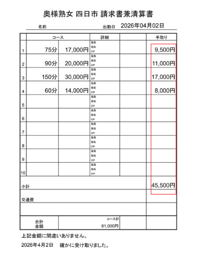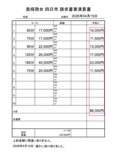 今日は、3年ぶりに出戻りで復帰してくれた熟女りりさんの“生の声”とお給料をご紹介します。