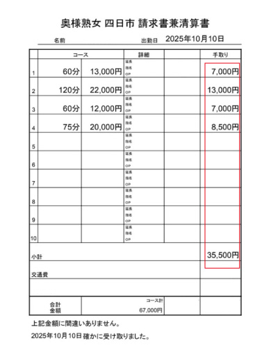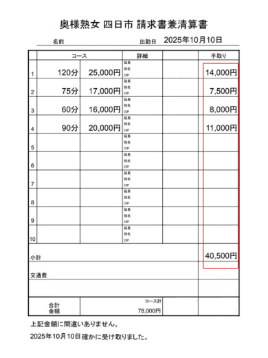 10/10のお給料明細です!!