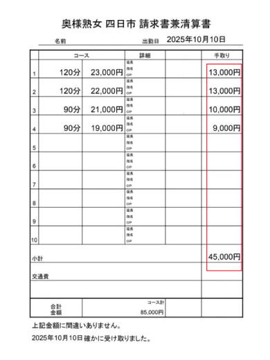 今回は熟女コースの女の子から