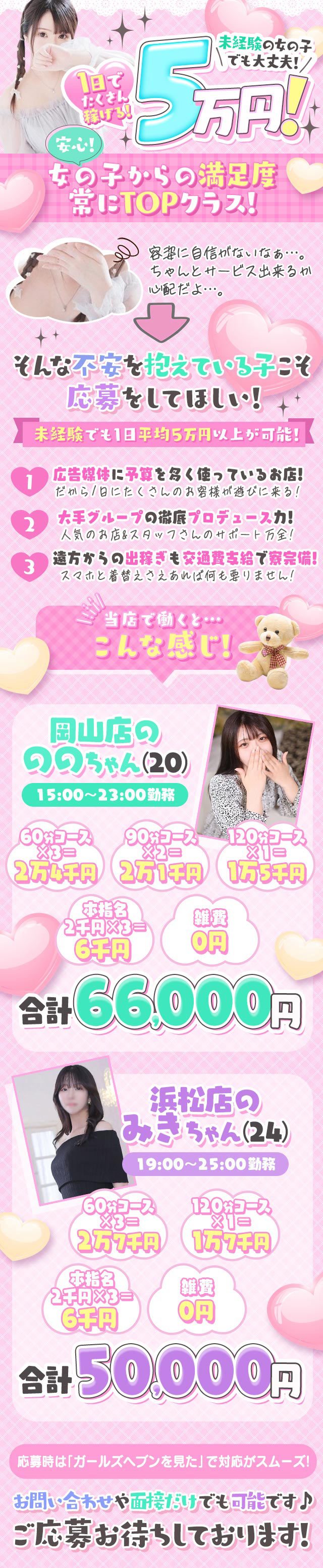 女の子自身が【自分のお給料】を決めていただけるシステムも大好評頂いております✨