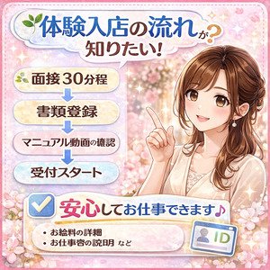 体験入店・勤務ができませんのでご了承ください。