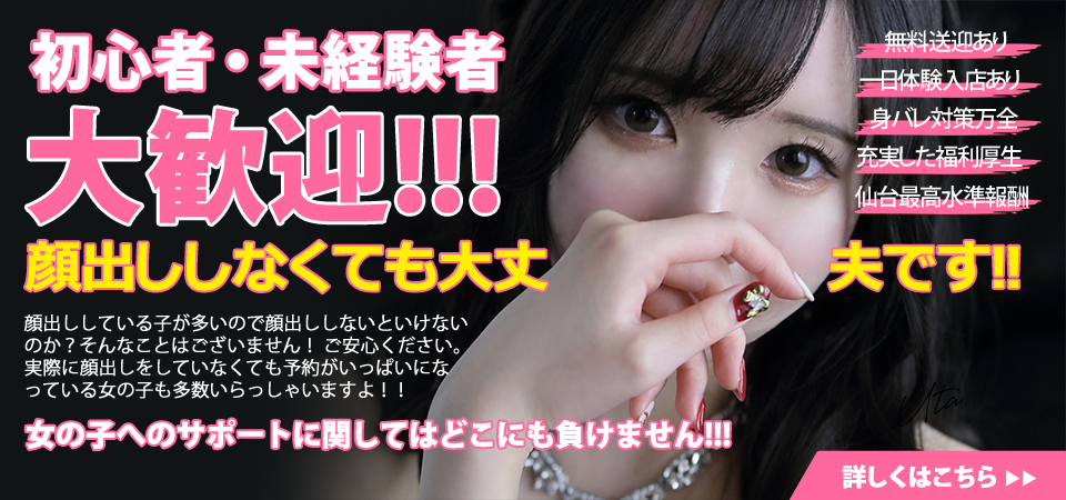そのため、リピート多い子の60分バックは東北最高額になっていると思います。また、本指名料は女の子が金額を決めることができますので、本指名が多い女の子はより多くもらえます。さらに営業手当もございますので、他店に行ったことがある女の子であれば、より多くもらえるのを実感して頂けると思いますよ。